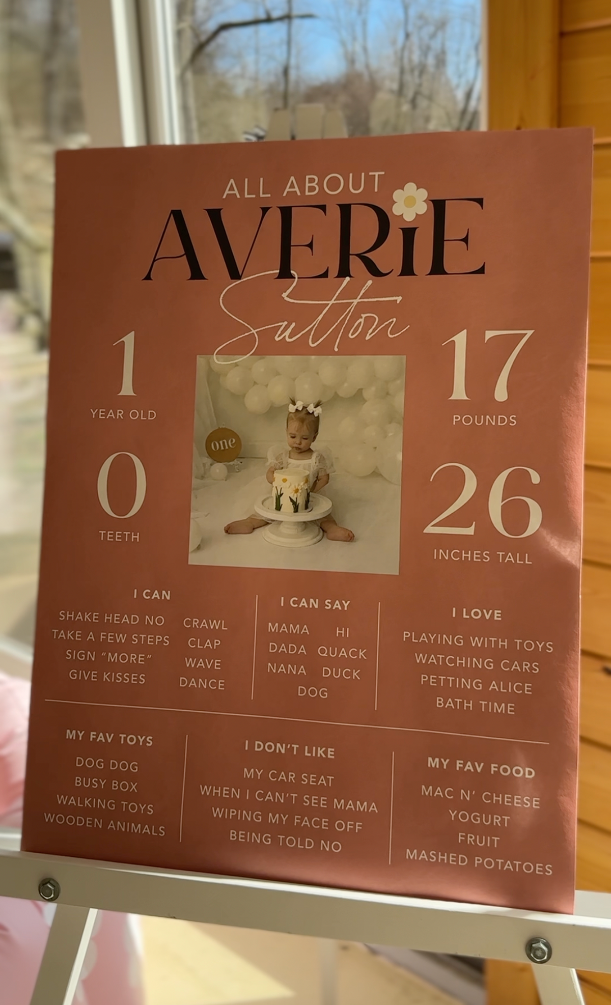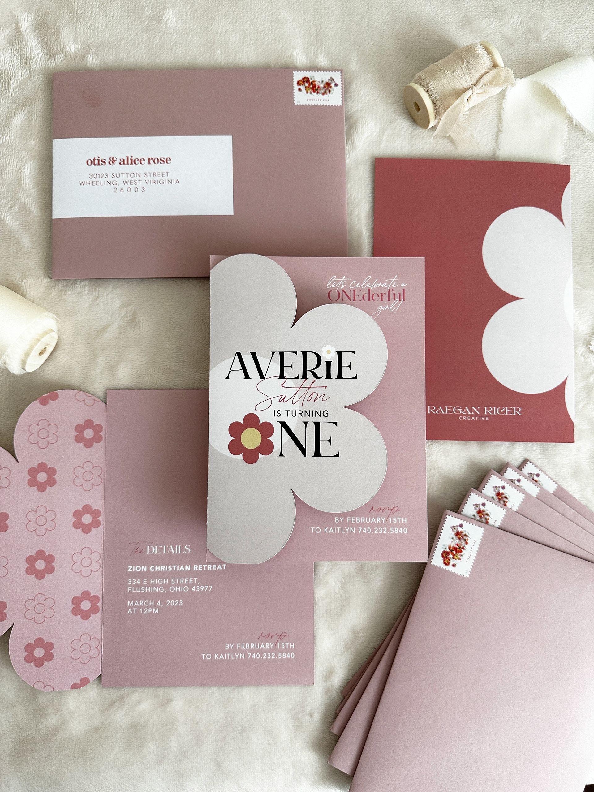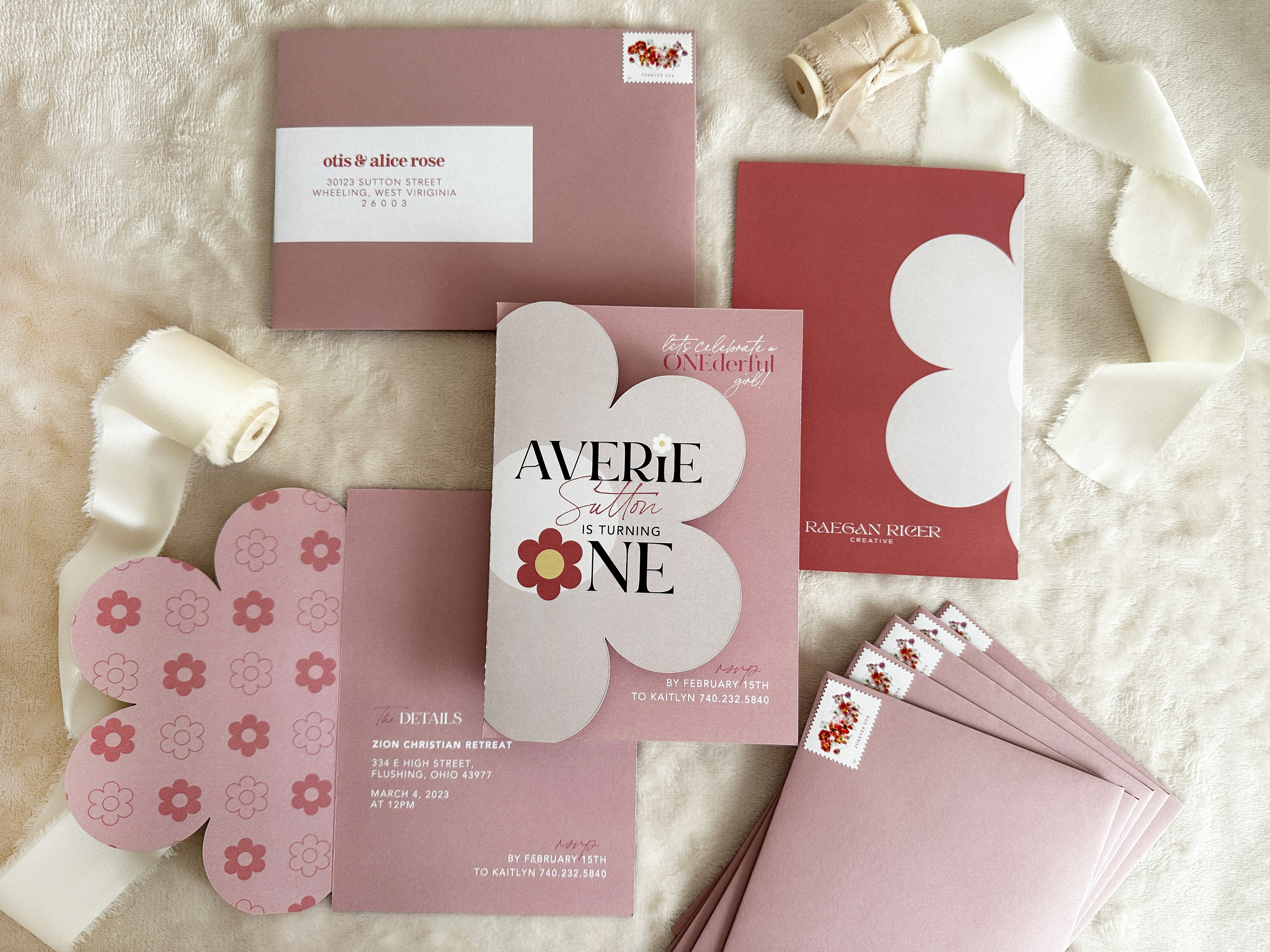 A first birthday party DREAM! This daisy theme was brought to life in every tiny detail. The client wanted to go all-out — and so we did. From the invitation to custom stickers, hand-cut daisy confetti, to custom cups and signage.